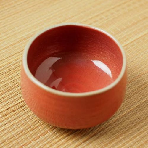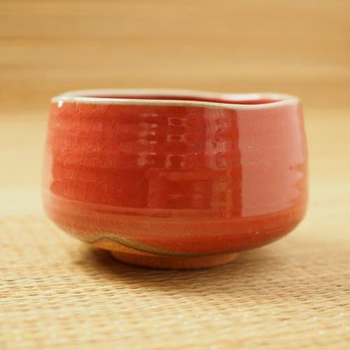 這是正宗日本美濃燒抹茶碗,桃山時代(1568~1603)出現樂燒,樂燒又分黑樂和赤樂,而本款茶碗即是用來向赤樂致敬。