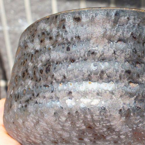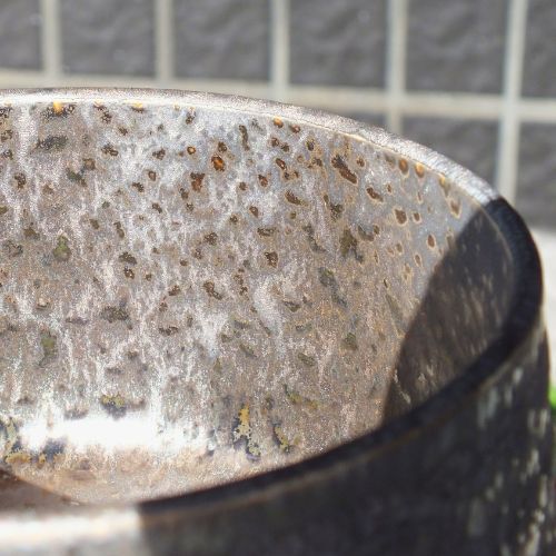 這是正宗日本美濃燒抹茶碗,明明是陶器,看起來卻很像鐵器還是銅器,在陽光下表面又帶有黃金色澤的紋路,實在令人嘖嘖稱奇!